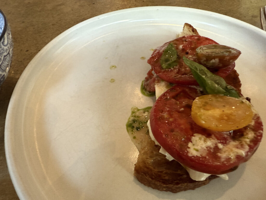 前菜は娘が和牛のダンプリング、私がトマトとブラータを頼んでシェアして正解でした。