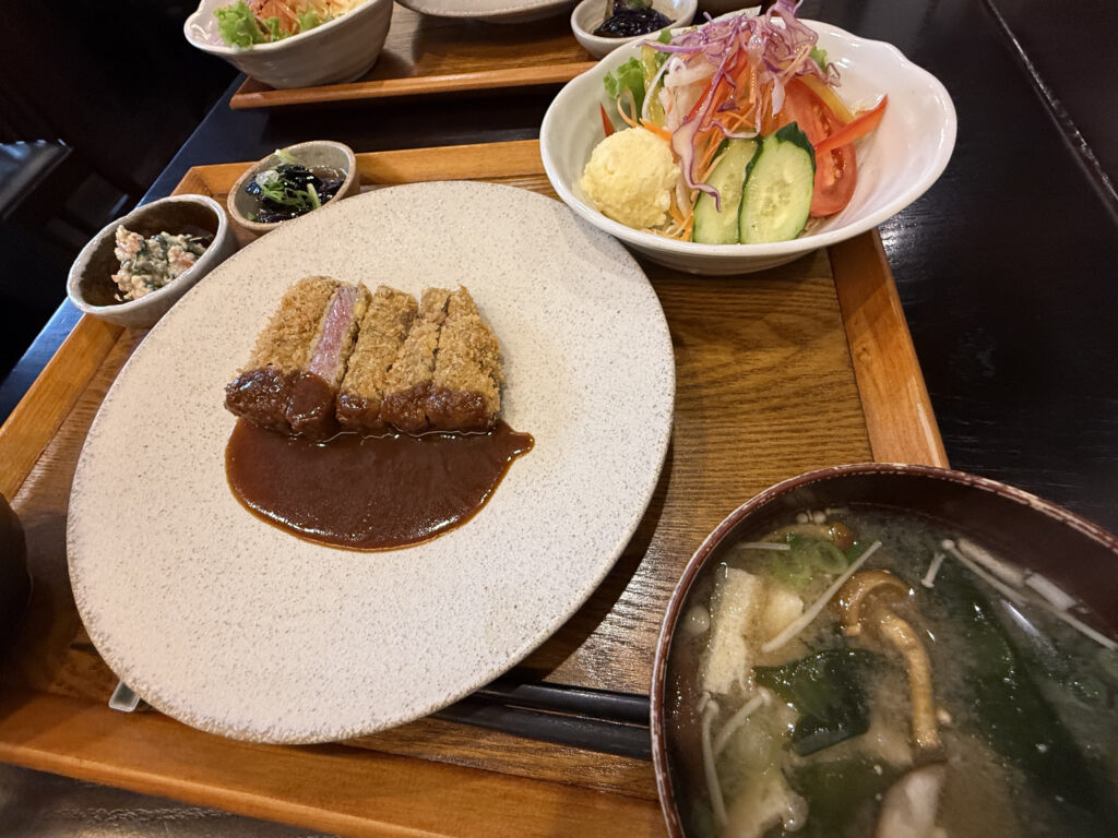 小鉢やサラダがついて、さすがにお肉も美味しくて、高めではありましたが満足なランチでした。