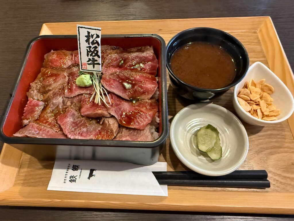 松阪牛のランプ丼を頂きましたが、お肉はほとんどローストビーフ状態で、とても柔らかく、もっとサシの入ったイチボもありましたが、赤身のランプが私たちにはちょうどいい感じでした。