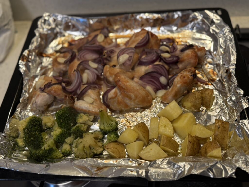 昨日焼いた醤油麹でマリネした手羽の残りと、日清のインスタント焼きそば。
